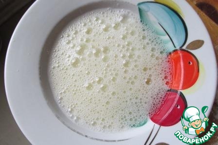 Белки яиц вилочкой взбить до легкой пены.