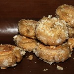 Каждый кругляшок искупать в белке и обмакнуть с двух сторон в сахарную пудру.
