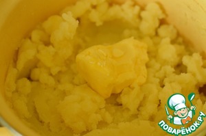 Картофель почистить, отварить в воде до мягкости. Воду слить картофель растолочь со сливочным маслом. -