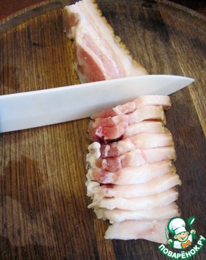 • Сало нарезать небольшими тоненькими кусочками.