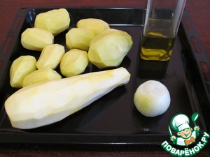 • Картошку, лук и кабачок почистить.
