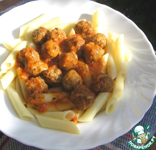 Как пелось в песенке, популярной в 70 -80-е годы: "Люблю я макароны, пусть говорят, они меня погубят..." Я опять с макаронами, а вернее с фрикадельками, вкус которых прекрасно сочетается с макаронами, оригинал рецепта подглядела у Джейми Оливера. Рецепт понравился, решила воплотить в жизнь, а позже захотелось познакомить с ним и вас - драгоценные мои подруги и друзья по сайту.