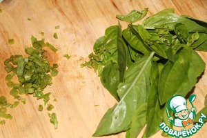 Со стебля базилика оторвем листочки, а сам стебель мелко порежем.