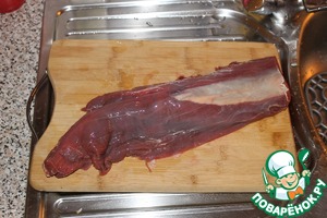 Итак, с нашего хорошего куска срезаем пленки и лишний жирок. Просушиваем хорошенько бумажными полотенцами.