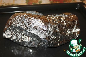 Тщательно заворачиваю рульку в фольгу. Укладываю на противень. Ставлю в разогретую до 200 градусов духовку на 2,5-3 часа. Готовность проверяю, проткнув мясо длинным острым ножом - должно легко протыкаться и вытекать прозрачная жидкость.