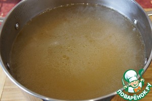 • Сварить бульон (у меня были два куриных каркасика, мясо с которых я сняла для другого блюда) с добавлением овощей (лук, морковь, сельдерей корневой и черешковый) и специй (черный перец горошком, душистый перец, гвоздика).