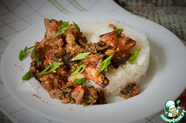 Рецепт «Свинина c баклажаном и рисом по-пекински»: