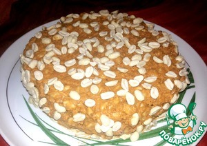Коржи прослаиваем кремом (толстым слоем), верх и бока торта также смазываем кремом, посыпаем оставшимся арахисом.