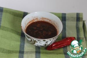 Готовлю маринад: соевый соус, оливковое масло, перец чили, и рисовый уксус смешиваю