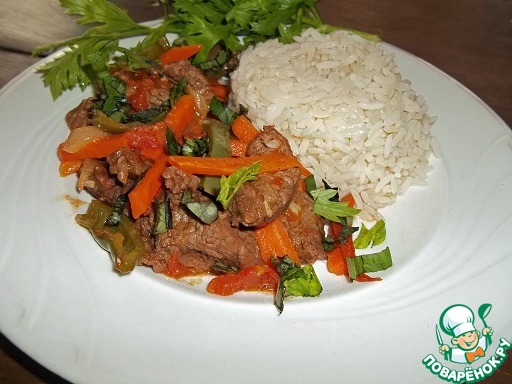 Рецепт «Говядина стирфрай с коричневым рисом»: