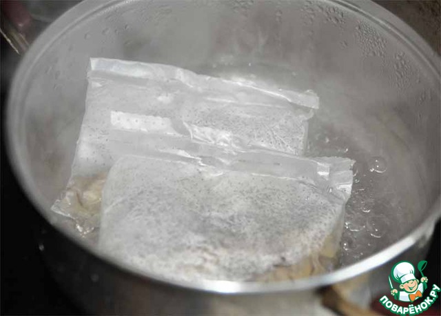 Кладём в кипящую воду и варим согласно инструкции 30 минут.