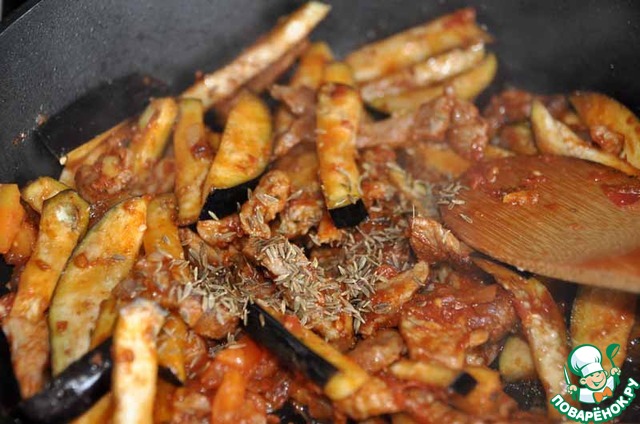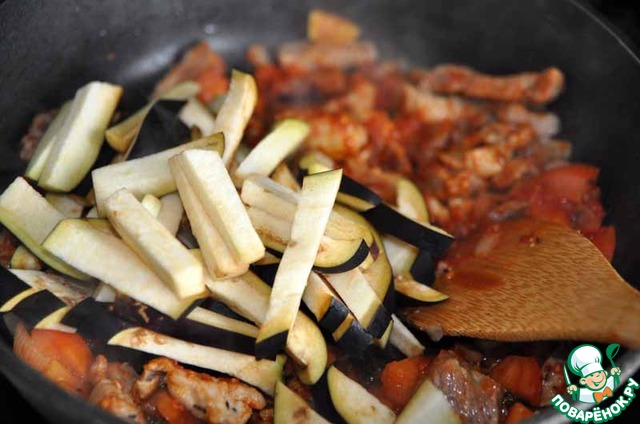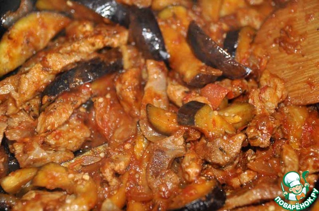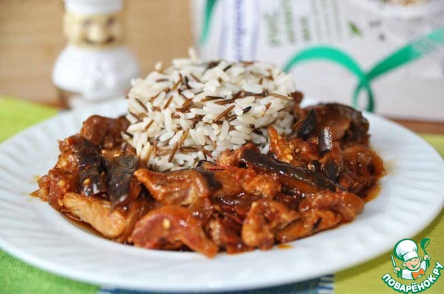 Сочное мясо с баклажанами от Ники Белоцерковской и смесью пропаренного и дикого риса на гарнир. Если вы возьмёте постную свинину или телятину, то блюдо будет практически диетическим (для тех, кто желает похудеть). А смесь пропаренного и дикого риса на гарнир ещё более снизит калорийность этого блюда.