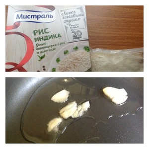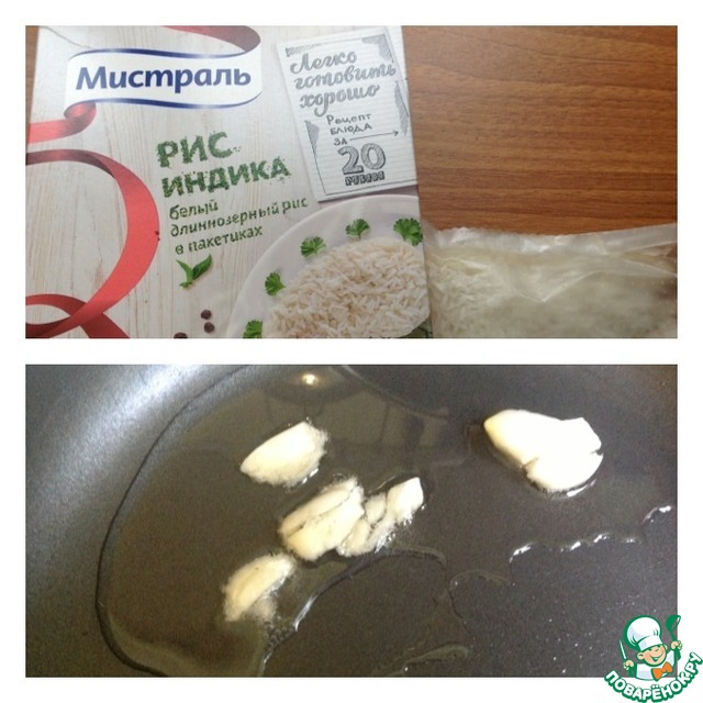 Рис ставим отваривать в подсоленую кипящую воду согласно инструкции на упаковке.
