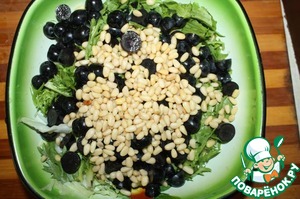 Виноград порезал пополам. Добавил кедровые орешки