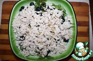 Курицу разделил на волокна и нарезал
