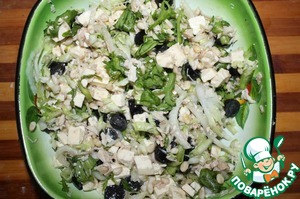 Сделал фету (http://www.povareno k.ru/recipes/show/96 725/ тут рецепт), подумалось, что надо сделать с ней салат. Греческий салат - не мой вариант, так как не люблю сладкий перец, оливки, оливковое масло. Потому придумал свой рецепт.