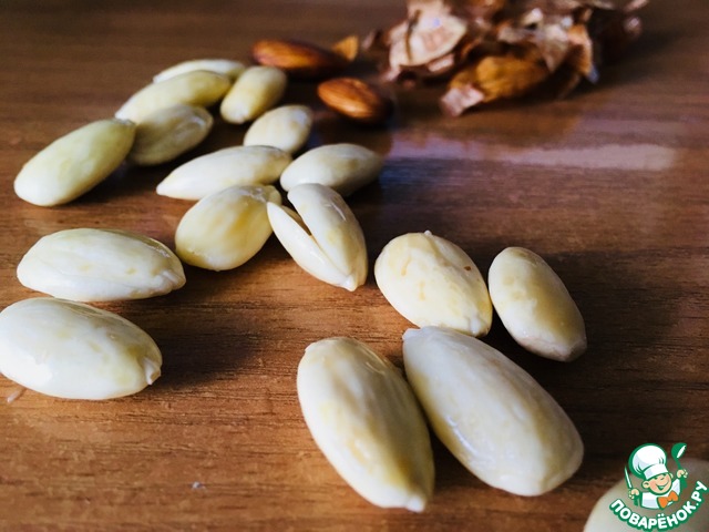 Очищаем миндаль от кожуры, промываем орешек в воде.