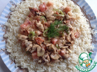 Рассыпчатый рис с очень вкусной подливкой - густой, сметанной, с ароматом подкопченного бекона и с кусочками нежнейшего кролика - ну что может быть вкусней?