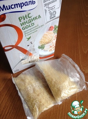 В кипящую подсоленную воду опускаем пакетики риса из расчета на одну порцию один пакет. Варим 30 минут. -