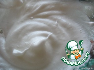 Взбиваем до жестких пиков оставшийся белок с сахаром (0,5 ч.л.)