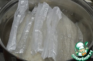 В кипящую воду кладем пакетики с рисом и варим его 15 минут.