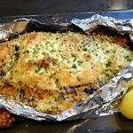 Карп, запеченный в духовке с рисово-овощной начинкой. Нежнейшая рыба с очень ароматной начинкой не оставит никого равнодушным. Подается запеченная рыба с брусничным соусом D’arbo и ломтиками лайма.