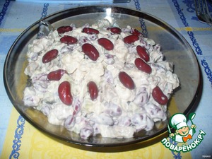С фасоли слить жидкость и добавить в салат.