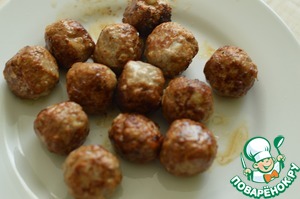 3. Пока кизил варится из фарша сформировать небольшие шарики. В сковороде разогреть масло и обжарить тефтели до золотистого цвета.