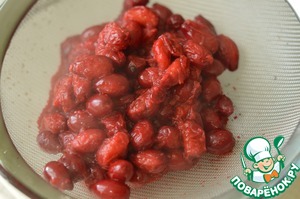 4. Кизил протереть через сито, посолить, поперчить и добавить сахар по своему вкусу.