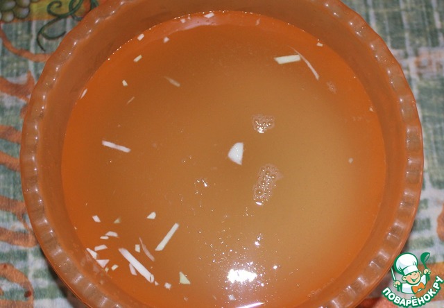 Затем рассол сливаем-НЕ ВЫЛИВАЕМ! Добавляем сахар и растворяем его в рассоле...