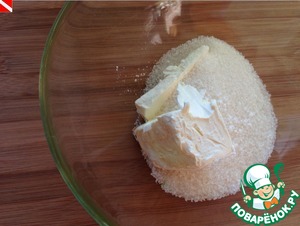 Смешаем размягченное сливочное масло и сахар до получения однородной гладкой массы
