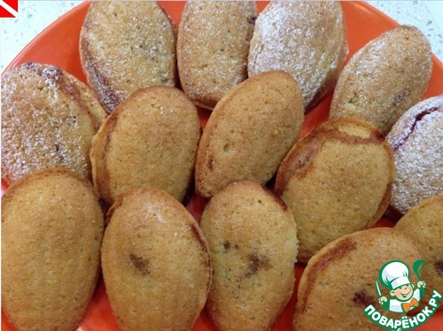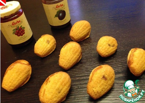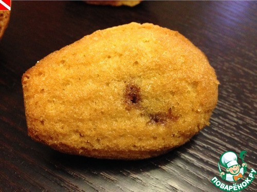 Выпекаем мадленки сначала 4 минуты при 210 градусах, хатем уменьшаем до 180 и печем еще 4 минуты.