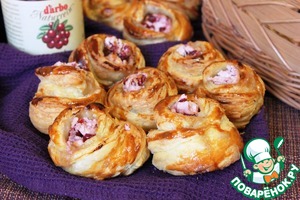 Творог с брусничным соусом Darbo - волшебное сочетание! Поэтому я решила приготовить слоёнки с творогом и брусничным сусом. Слоёнки будут в форме "розочек", что делает это блюдо очень интересным и красивым.