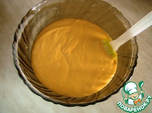 Растопим в микроволновке сливочное масло и добавим к нашей яичной массе тонкой струйкой, не прекращая взбивать.
