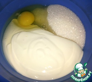 • Смешать миксером яйцо, сахар, соль и сметану.
