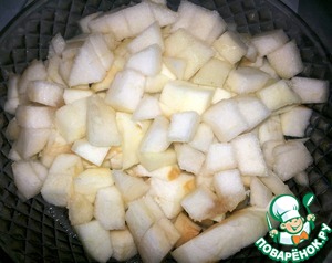 • Яблоки и грушу очистить от кожицы и нарезать кубиком.
