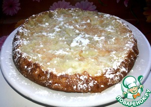 • Достаем наш пирог из мультиварки с помощью контейнера-пароварки. Посыпаем сахарной пудрой.