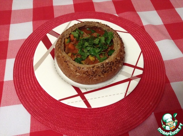 Ингредиенты для «Суп-гуляш в хлебе»: