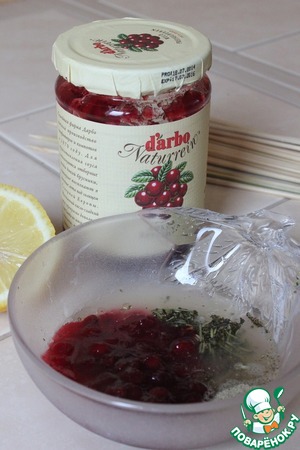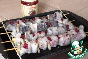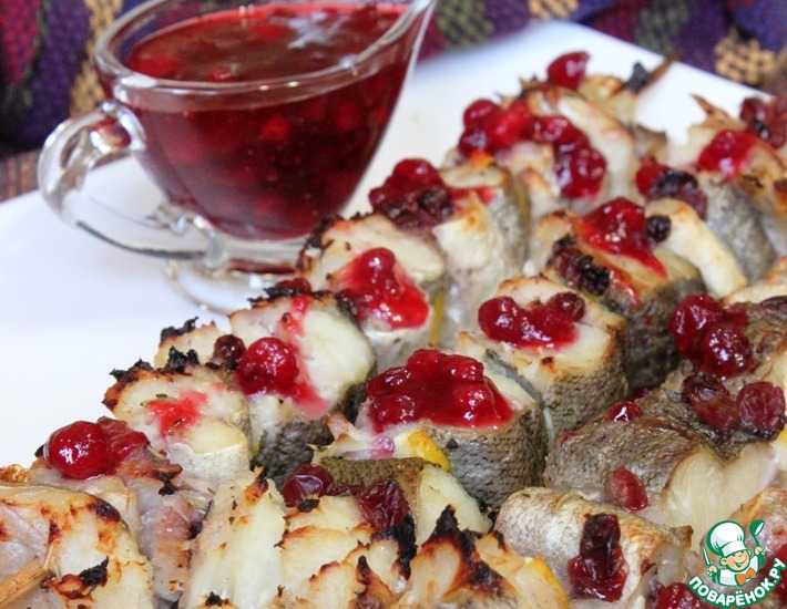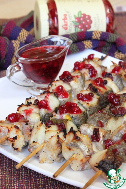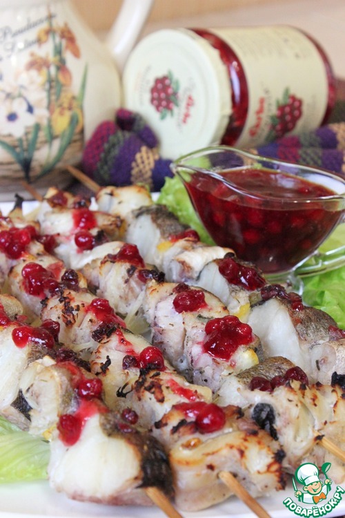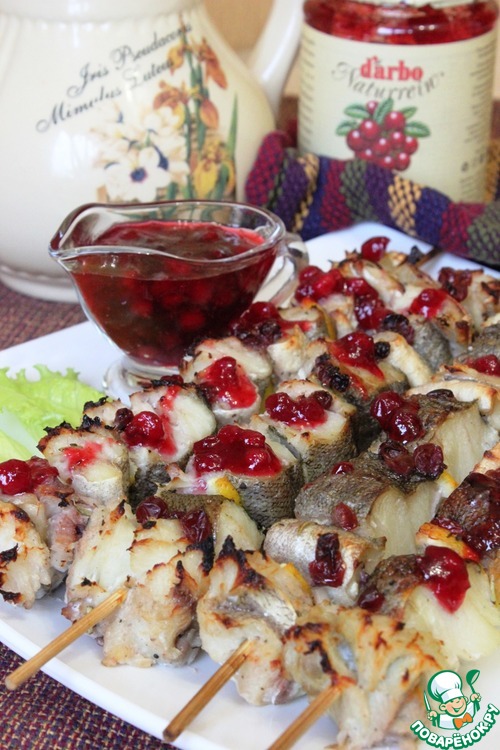 Рецепт «Шашлычки из трески с брусничным соусом»: