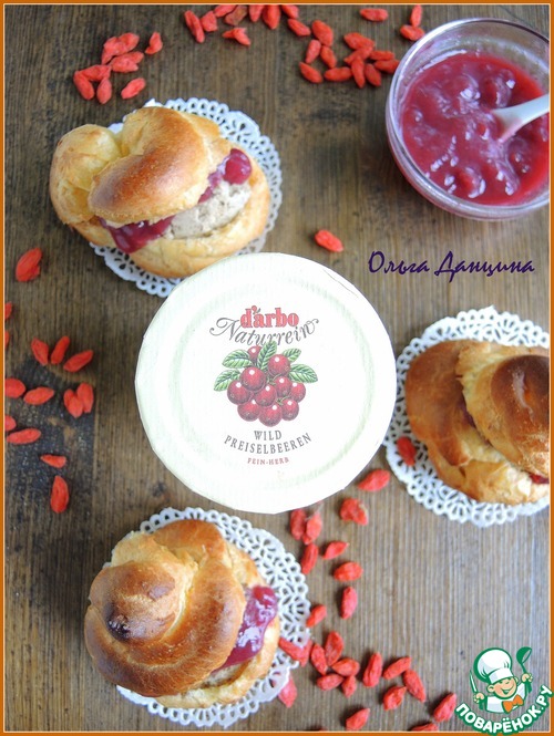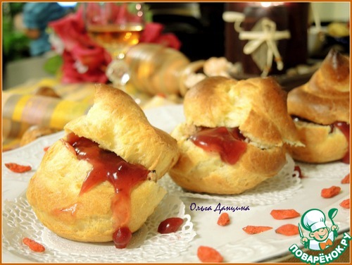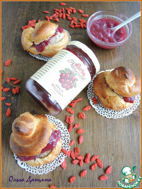 Рецепт «Заварные булочки с кремом из утки с брусничным соусом»: