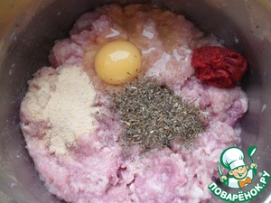 • Смешать мясной фарш с яйцом, солью, базиликом, чесночным порошком и томатной пастой.