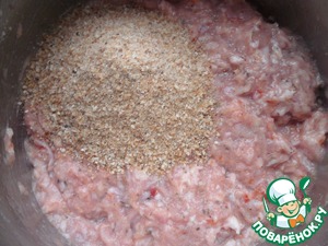 • Добавить к массе ¼ стакана молотых сухарей и все вымесить в однородную массу.