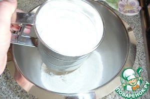 Просеиваем в дежу или глубокую миску 450 г. пшеничной муки в/с., добавляем 1 ч. л. сахара, 2 ч. л. соли, -