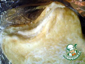 Когда остынет, разрезать его на две лепешки. -