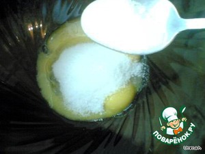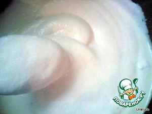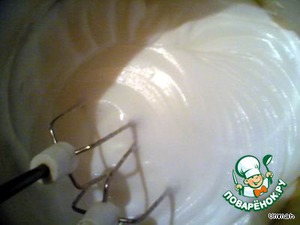 Белки взбить в крепкую пену, постепенно добавить сахар (2-3 столовые ложки).