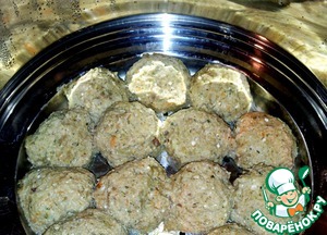 Из фарша накатаем шарики - тефтельки размером с куриное яйцо. Ст. сын не ест жареное и острое, поэтому я готовила для его на парУ.