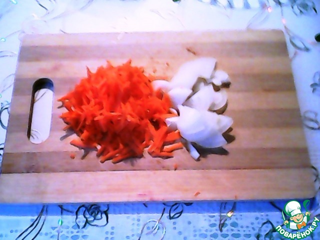 Приготовим лук репчатый, морковь. Кто-то любит моркови больше, но она даёт сладость, а печень тоже сладит, поэтому пробуйте сами, сколько вам использовать.