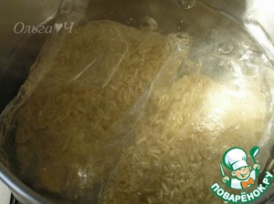 Вскипятить воду для риса, опустить пакетики и варить до готовности.
