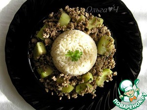 Рецепт «Свинина с огурцами и коричневым рисом»: