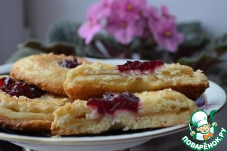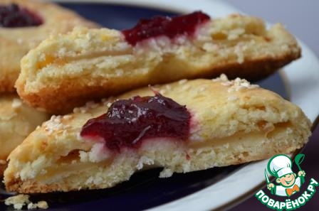 Очень нежное, рассыпчатое, песочное печенье с яблочной начинкой и с клюквенным соусом. Думаю, вам понравится.